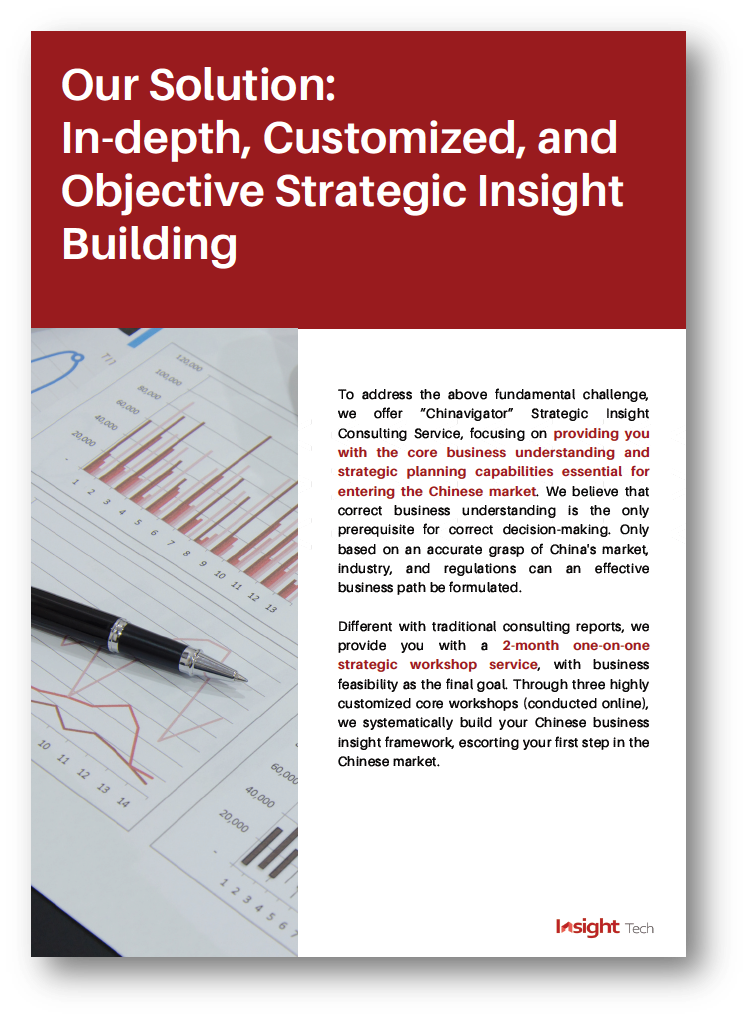 Insight Tech provides “Chinavigator” Strategic Insight Consulting Service, focused on equipping Swiss innovations with core business insights and strategic planning capabilities required for China market entry. Drawing on in-depth knowledge of Swiss innovation ecosystem and accurate grasp of China market realities, “Chinavigator” helps premium Swiss scale-ups bridge understanding gaps and develop clear, feasible, and risk-controlled entry strategies.